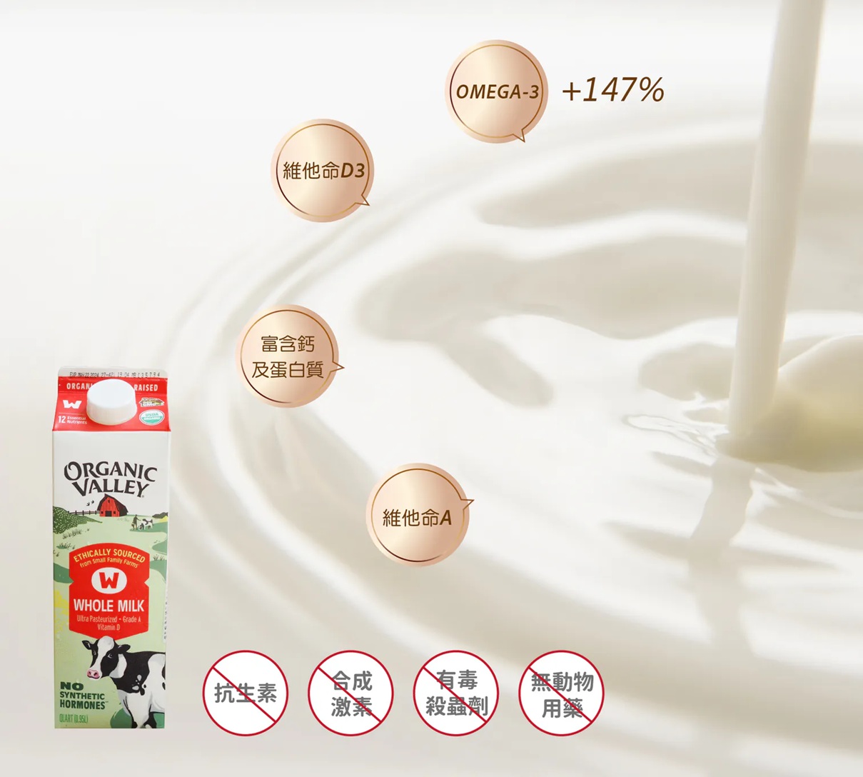 有機穀乳牛全球在綠色牧場上吃草,這有助於它們的牛奶比傳統含有更多的omega-3和CLA(共北極油脂酸)。