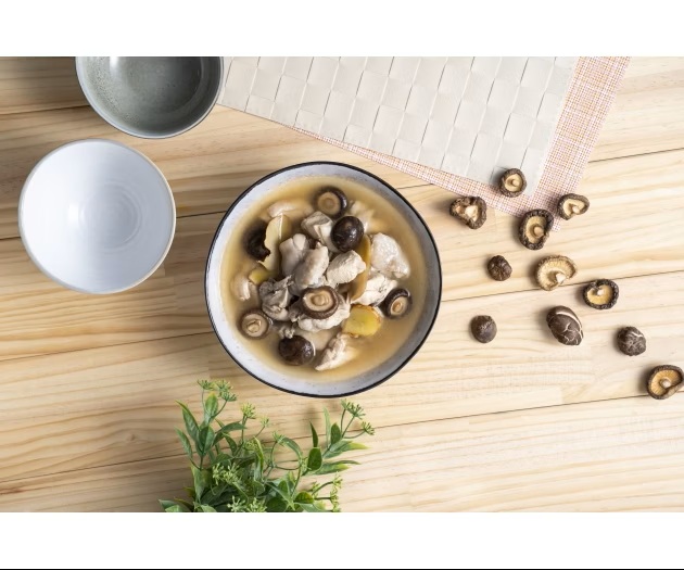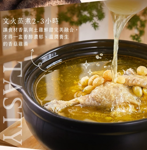 成 份:水、切塊雞肉、鈕扣菇、薑片、米酒