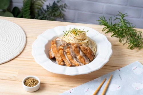 濃濃奶香吸附在Q彈麵條裡,搭配軟嫩新鮮的雞腿肉! 家庭必囤餐點!